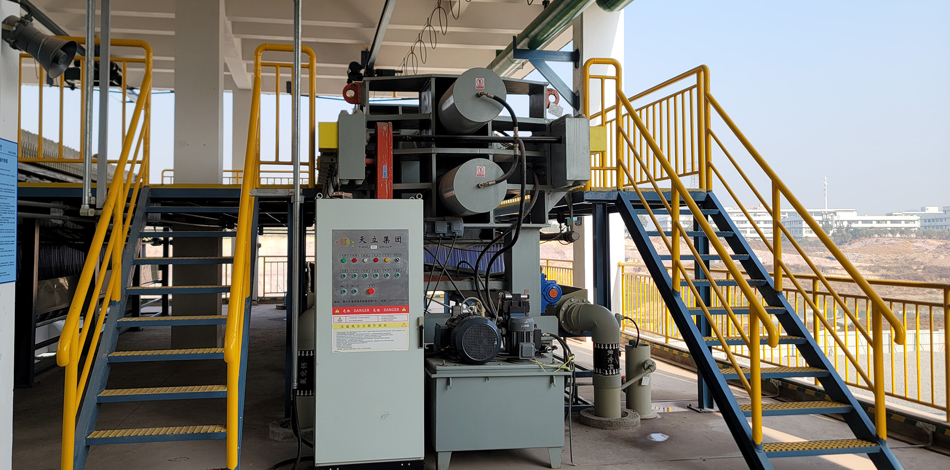 美國(guó)客戶的高壓隔膜壓濾機(jī)和操作平臺(tái)